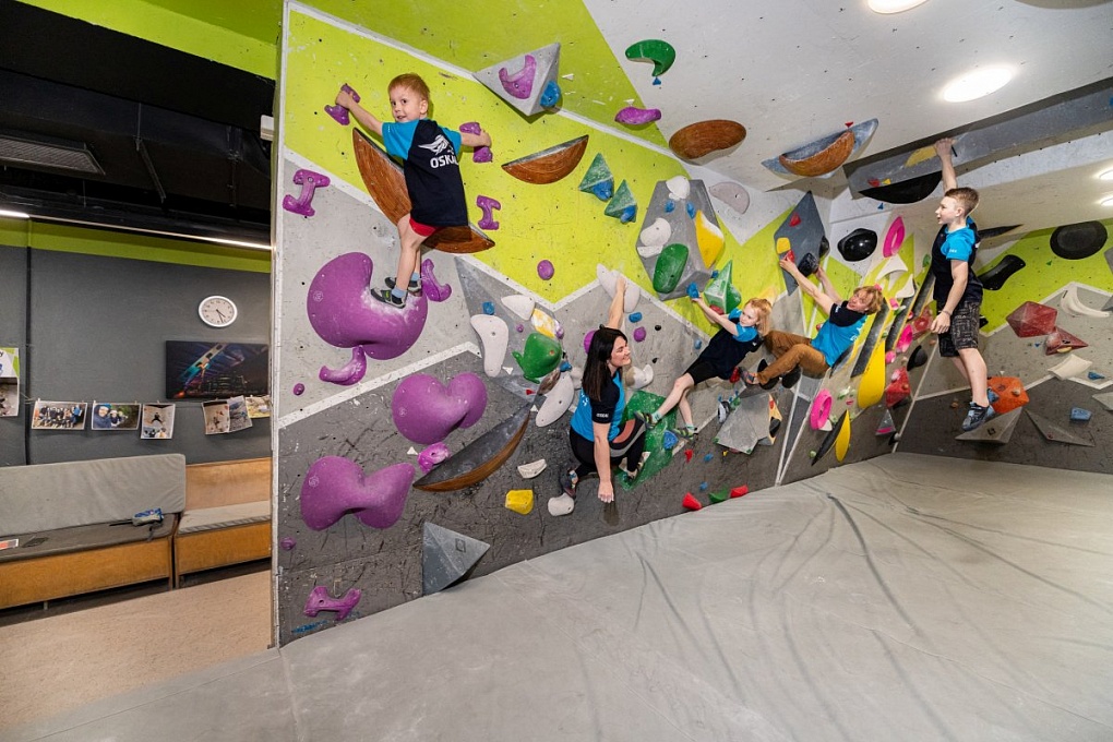 Есть две классные зоны для разминки с необходимым инвентарём, удобные раздевалки с душевыми и уютная зона кафе, где родители могут выпить кофе или поработать за ноутбуком. Рядом со скалодромом большая бесплатная парковка, а путь от метро займёт 5-7 минут.