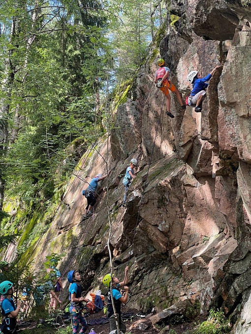 Ребята учились самостоятельности, бережному отношению к вещам и природе, познавали азы скальной техники лазания и очень много смеялись, иными словами, жили как настоящая большая семья.