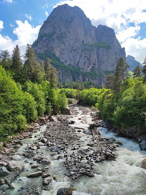 В один из тренировочных дней нас застала непогода – на улице было пасмурно и моросил дождь. Большинство людей в такую погоду скорее всего никуда бы не поехали, но только не мы. Подготовленным и замотивированным спортсменам все ни по чём. Подъем к сектору по скользкой тропе был сложнее, чем обычно, но оно того стоило. Наверху нас ждал потрясающий вид: туман застилал лес и скалы, нависающие стены защищали нас от дождя, шум которого сопровождал нас на протяжении всего дня – хотя трассы, по которым мы лазали, были сухие. Это был один из самых запоминающихся дней наших сборов. Составить ему конкуренцию может разве только наша поездка к леднику Цей в наш очередной день отдыха. Мы, конечно, сделали огромное количество фотографий, но они не передают и малой доли той красоты, которую мы видели своими глазами. До ледника идет пятикилометровая экотропа вдоль горной речки Цейдон. Добравшись до ледника и сделав ещё с сотню фотографий, мы устроили пикник с круговой горной панорамой и отправились обратно. По пути к дому мы заехали на смотровую площадку и полюбовались на Замарагскую ГЭС и одноимённое водохранилище. А ещё успели покупаться в термальных бассейнах. Это был очень насыщенный день – столько эмоций и воспоминаний!