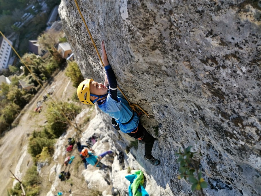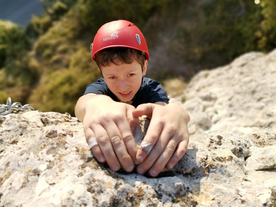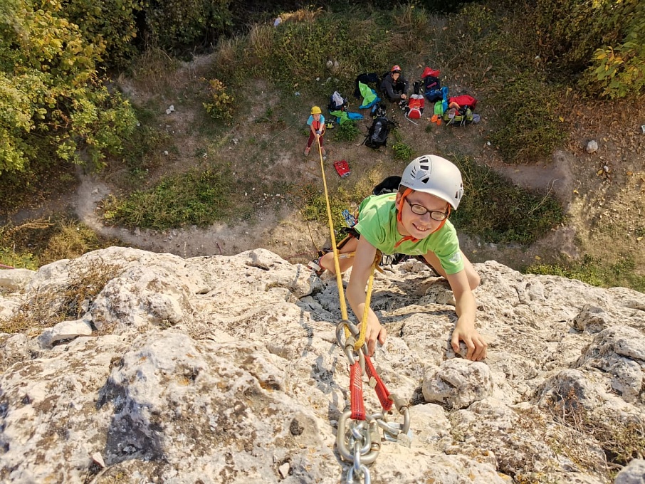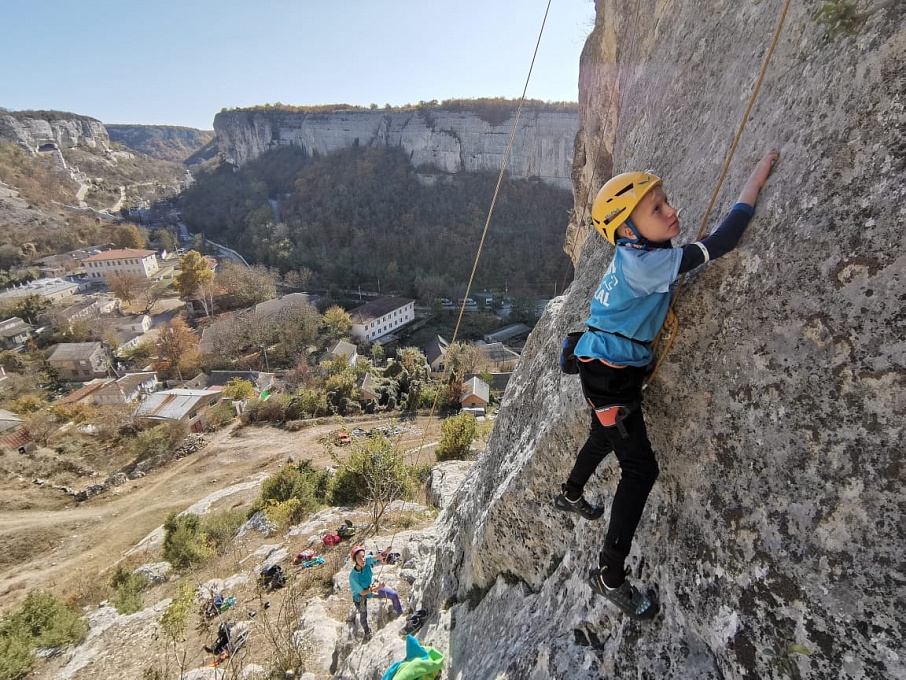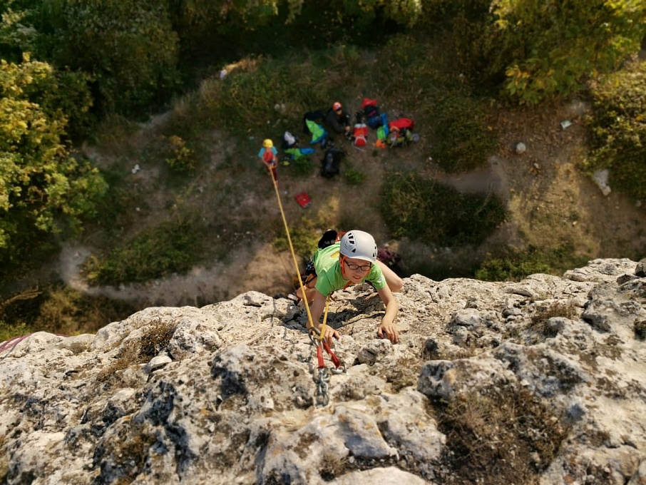На секторах «Детский мир» и «Мир» ребята сами снимали маршруты, безопасно перевязываясь на станциях. После многочисленных тренировок на скалодромах ребята уверенно пользовались страховкой, и пришло время опробовать навыки на естественном рельефе. Юные скалолазы попробовали пролезть свои первые трассы на скалах с нижней страховкой. Были и первые срывы – пугающие, но безопасные, ведь страхует надежный напарник. После срывов, собравшись с духом, спортсмены продолжали восхождение.