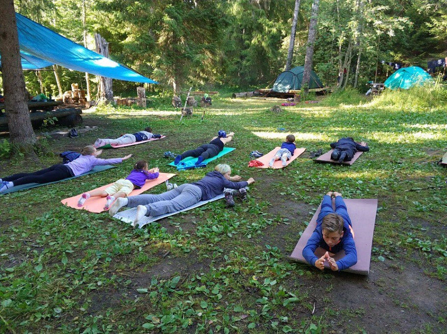 Пробежаться, перепрыгивая через корни и камни, вдоль озера Светлое, искупаться в его бодрящей воде – вот хороший старт для трудного и насыщенного тренировочного дня. Еще до завтрака наши спортсмены успевали сделать разминку и нелегкий комплекс ОФП. К этому времени наши дежурные уже разводили костер, приготавливали на нем чай и плотный завтрак. В походных условиях при тяжелой физической нагрузке простые каши со сгущенкой и ягодами кажутся настоящей амброзией, пищей богов! А подкрепившись и собрав все необходимое в рюкзак, ребята шли на скалы, чтобы со свежими силами приступить к тренировкам!