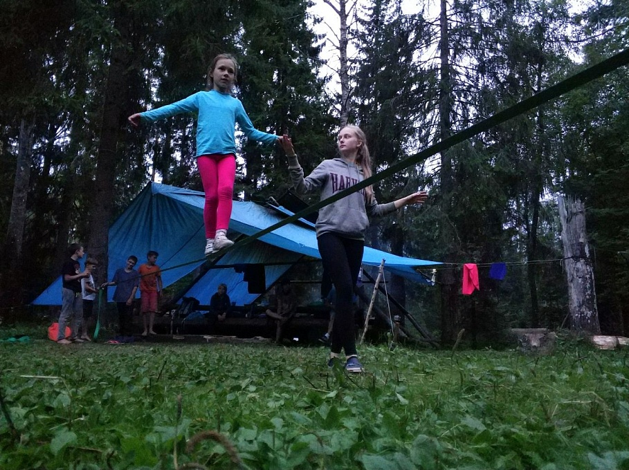 В свободное от лазания время ребята занимались бытовыми делами, делали упражнения на увеличение силы и растяжку, заготавливали дрова и, конечно же, купались в озере. Были среди наших активностей и слэклайн, и фрисби, и тарзанка. Мы играли в волейбол и даже катались на самодельной байдарке!