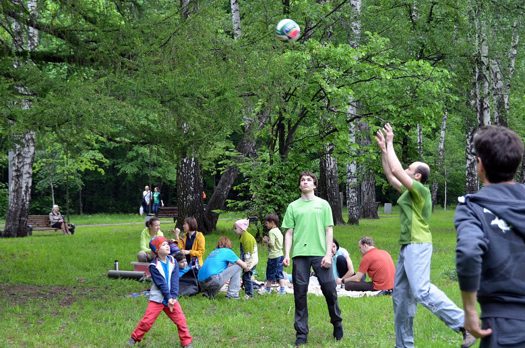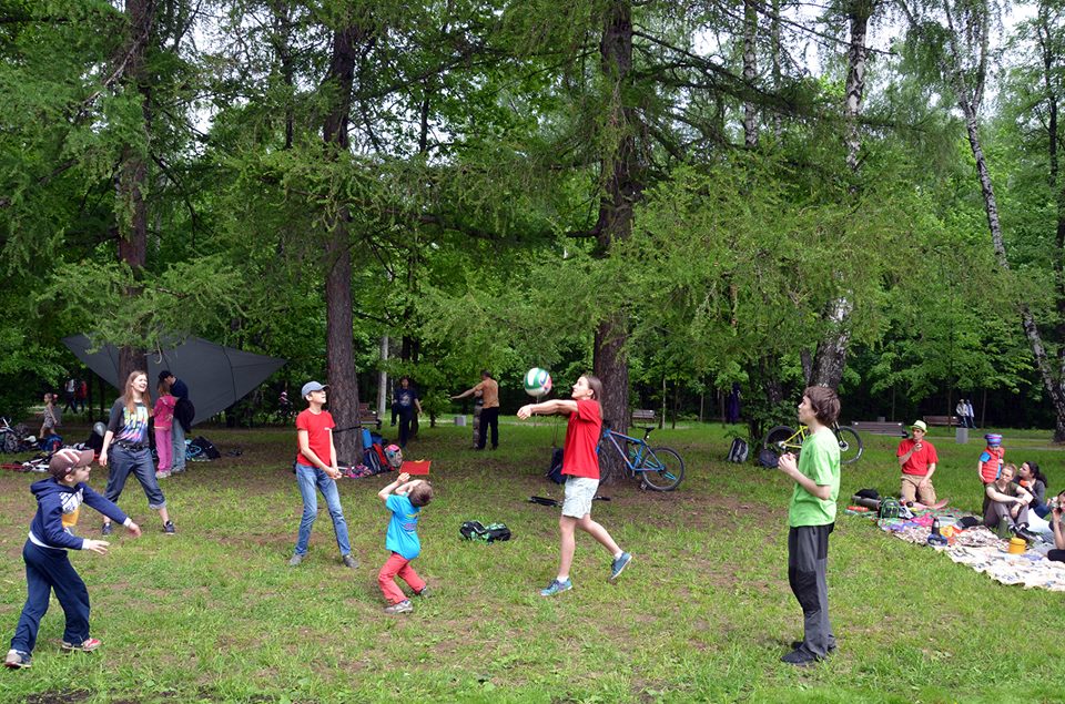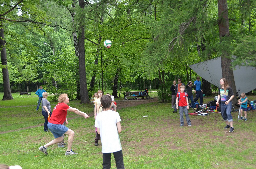 Ребята и родители приехали в парк на велосипедах, роликах, самокатах и скейтах. Вместе c ними тренеры клуба нашли отличную поляну для большой компании и разбили лагерь. Дети вместе с родителями бегали, играли, проводили конкурсы и устраивали соревнования, и, что самое главное, общались.
