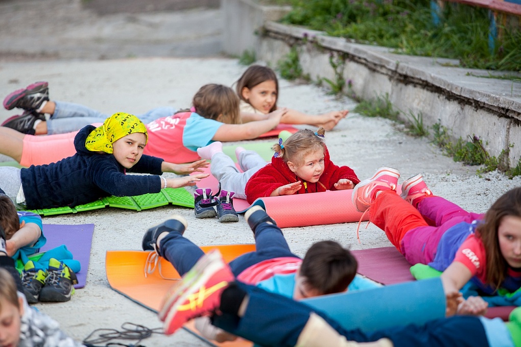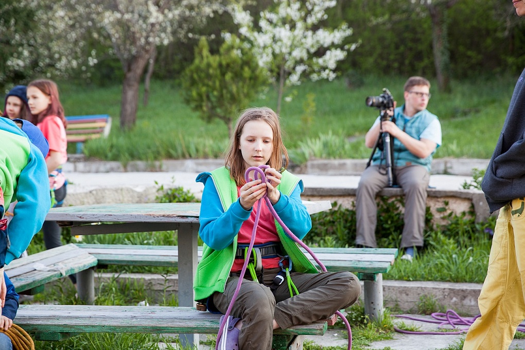Кроме занятий скалолазанием, в нашу программу вошли: вязание узлов и маркировка верёвки, ежедневные ОФП и растяжка, соревнования по отжиманиям, подтягиваниям, прыжкам на скакалке и вису на турнике (рекорд – 30 минут!).