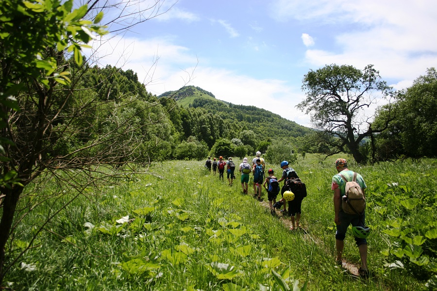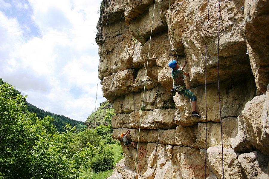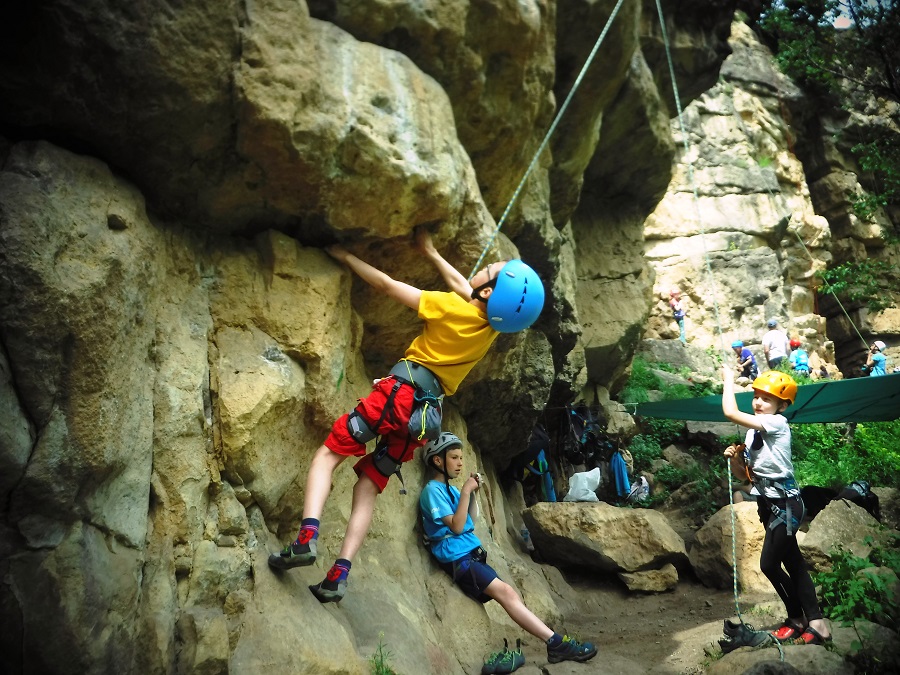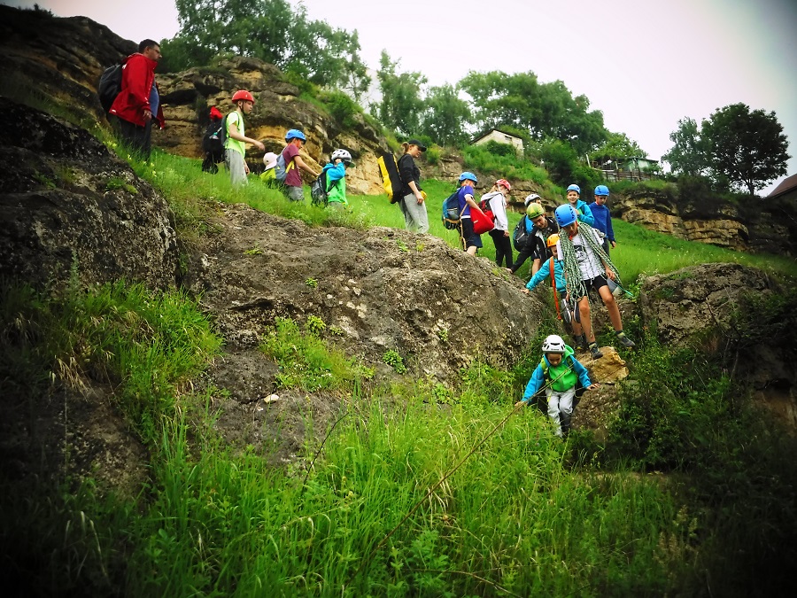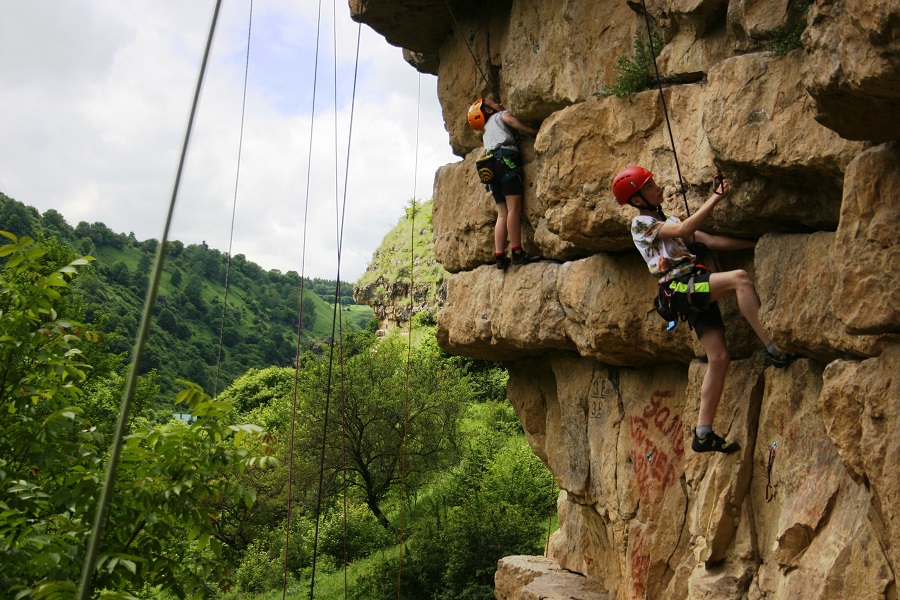 На наших сборах не обошлось и без развлекательных активностей. Ребята состязались в спортивной эстафете, сами раскрашивали футболки, делали причудливые поделки из бумаги, пускали огромные мыльные пузыри и даже устроили скалолазную викторину! В дни отдыха мы гуляли в парке, наматывая километры в горку и вниз, пили воду в нарзанной галерее, ходили по слэклайну и катались на канатной дороге. Один чудесный день мы полностью посвятили походу по ущелью вдоль реки Березовая балка. Дойдя до конца скальных массивов, мы забрались в гору, преодолев 200 м высоты, и попали на площадку, с которой нам открылся потрясающий вид на долину!