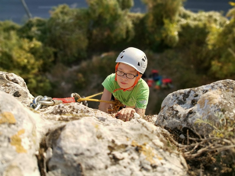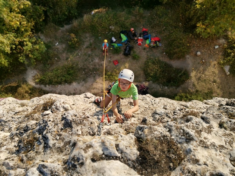 На секторах «Детский мир» и «Мир» ребята сами снимали маршруты, безопасно перевязываясь на станциях. После многочисленных тренировок на скалодромах ребята уверенно пользовались страховкой, и пришло время опробовать навыки на естественном рельефе. Юные скалолазы попробовали пролезть свои первые трассы на скалах с нижней страховкой. Были и первые срывы – пугающие, но безопасные, ведь страхует надежный напарник. После срывов, собравшись с духом, спортсмены продолжали восхождение.