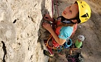 В последний лазательный цикл мы отправились на сектор «Ларишес» с его длинными, по 25-30 метров, трассами, с положительным уклоном, необходимым для отработки постановки ног на естественном рельефе. Сначала дети жаловались, что они не могут пролезть трассы, что не за что ухватиться, некуда поставить ноги, и вообще это невозможно… но потом ребята с лёгкостью взбирались на всю высоту маршрутов!
