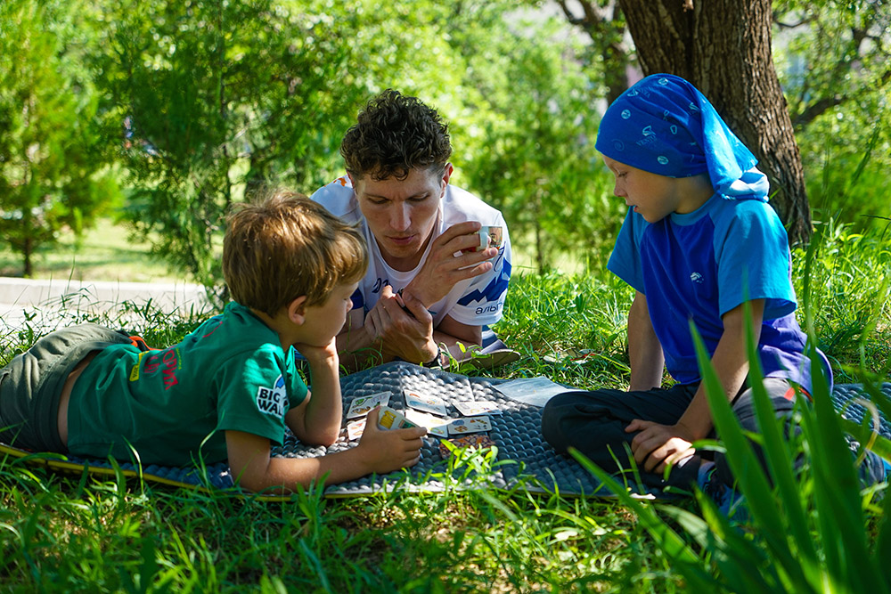 Каждый день ребята серьезно трудились: ежедневные часовые растяжки, большой объём ОФП и СФП, пробежки к морю и обратно с набором высоты в 200 метров, 16-километровый трекинг в день отдыха в Бахчисарае, обязательный дневной сон и строгий режим дня. И, конечно, тренировки на скалах! Но даже при таком насыщенном графике мы смогли поиграть, почитать и даже чуть-чуть похулиганить.