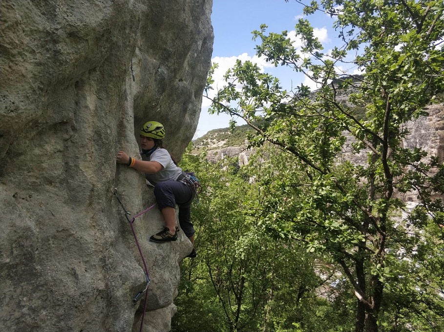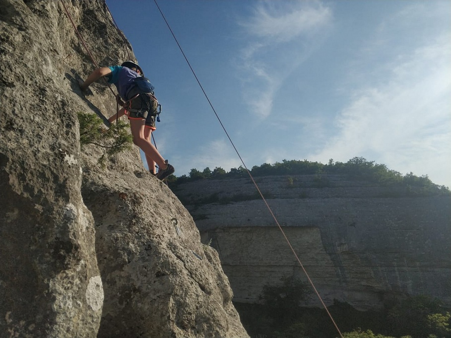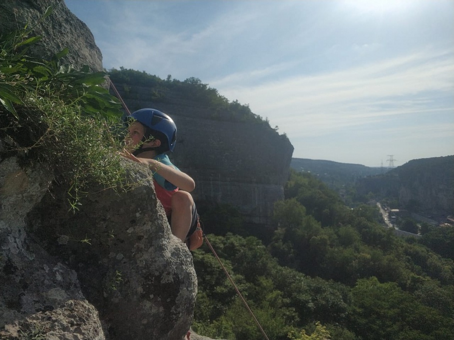 А если день выдался солнечным, но не жарким, надо, конечно, пойти на скалы. И ребята отправлялись лазать на целый день. Представляете, сколько трасс можно пролезть за это время? Вместе с внимательными, опытными тренерами ребята разбирали трассы, разгадывали расклады и после упорной борьбы залезали свои проекты. Ну а если с утра все-таки было жарковато – не беда, скалы ждали нас после обеда и такого нужного юным спортсменам тихого часа. Мы и за полдня успевали залезть все запланированные маршруты и даже больше.
