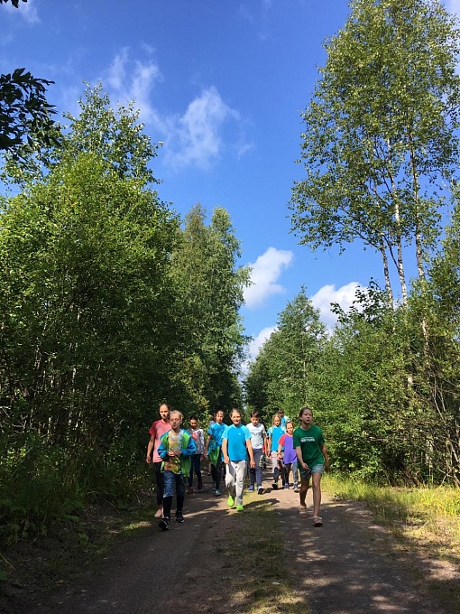Вечером на собрании, подводя итоги, каждый поделился своими яркими впечатлениями. Дети вспоминали все наши скальные тренировки, спортивные и развивающие активности, мастер-классы, интересные прогулки, и радостно смеялись все вместе! Особенно ярко мы провели последний день отдыха, пройдя интерактивный квест по поиску потерявшегося скалолаза. Разгадав интересные загадки, участники узнали адрес следующей подсказки.. Им предстояло отправиться по дороге на Треугольное озеро и отсчитать 700 шагов от деревянного мостика! Очень немногие знают, что в двух шагах от основного пути на скалы прекрасно сохранился старый бетонный погреб, остатки большой финской деревни Lietlahti.