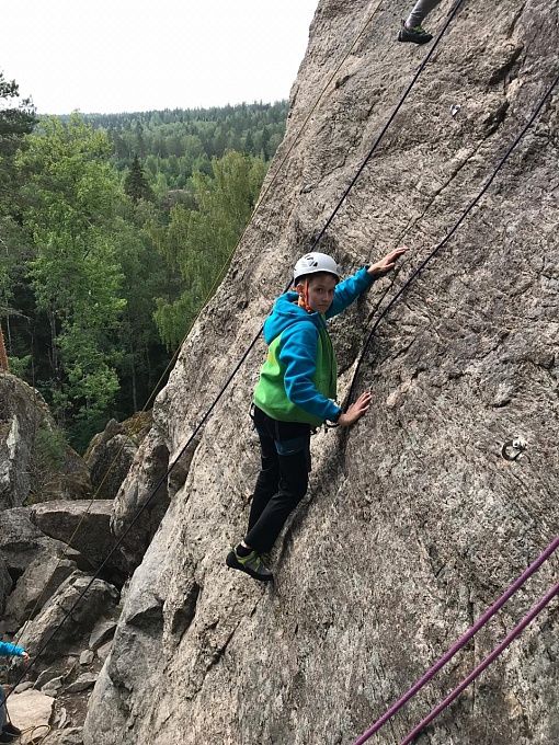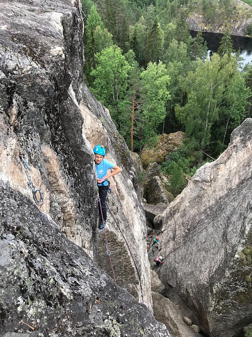 В течение всего выезда погода позволяла лазать каждый день, дождливых дней почти не было. Несколько раз мы сходили на основной массив Треугольного озера, пару раз на Горняк. Расположенные вблизи дома валуны позволяли иногда лазать боулдеринг. В ходе поездки мы открыли для себя новый сектор Veskalionmäki sport, находящийся в 15 минутах ходьбы от дома. Массив представляет собой 9 коротких нетрудных трасс с ровными площадками для страховки - там комфортно тренироваться начинающим скалолазам. Именно на нем мы и решили провести наши соревнования на скорость. Трассы выбрали на наклонной плите с удобной площадкой для старта и страховки. Под дружные крики поддержки, ребята старались показать лучшее время! Участники распределились по двум группам. Первое место в группе 2010 года рождения и младше заняла Ксюша Коробова, второе - Вероника Калугина, третье место досталось Петру Дудкову! В старшей группе разыгралась нешуточная борьба, первое место заняла Полина Жемчугова, второе - Иван Балыбердин, а третье - Эвелина Журина.