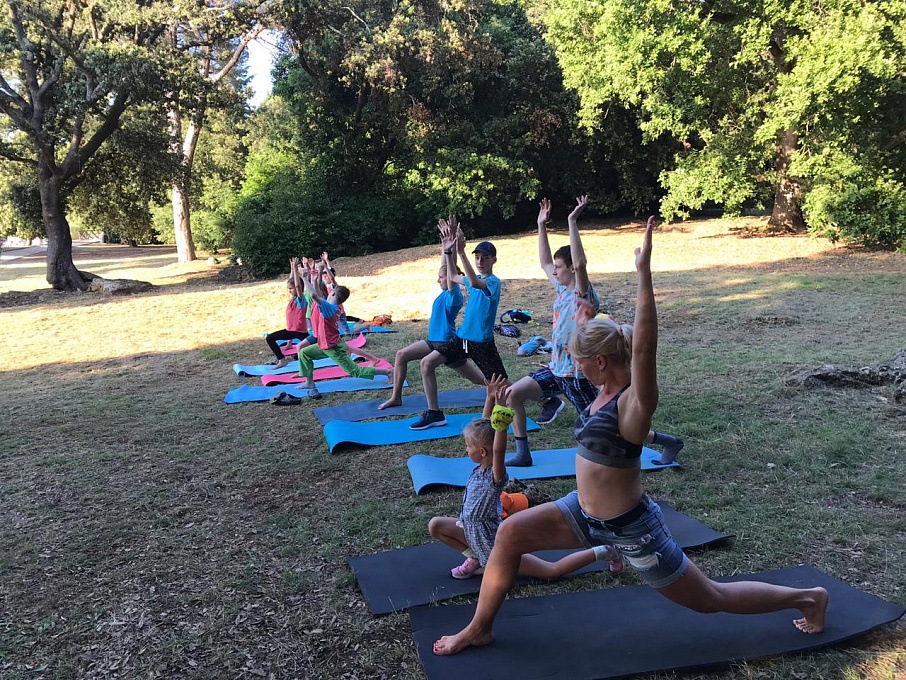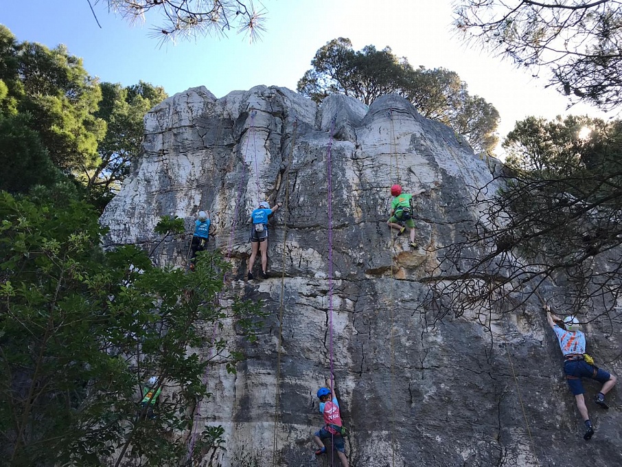 Каждый день нашего учебно-тренировочного сбора начинался с пробежки по большому парку с соснами, кедрами, лавровыми деревьями и эвкалиптами. Нам очень повезло с расположением скал – большая часть спортивных маршрутов находилась в тени до часу дня. Неизменно солнечная погода позволяла нам купаться два раза в день, после того, как заканчивались скалолазные тренировки и послеобеденная сиеста. Вечерние занятия ОФП и растяжка иногда дополнялись соревнованиями по подтягиваниям и подъемам ног, плаванию, или сменялись аквааэробикой на пляже!