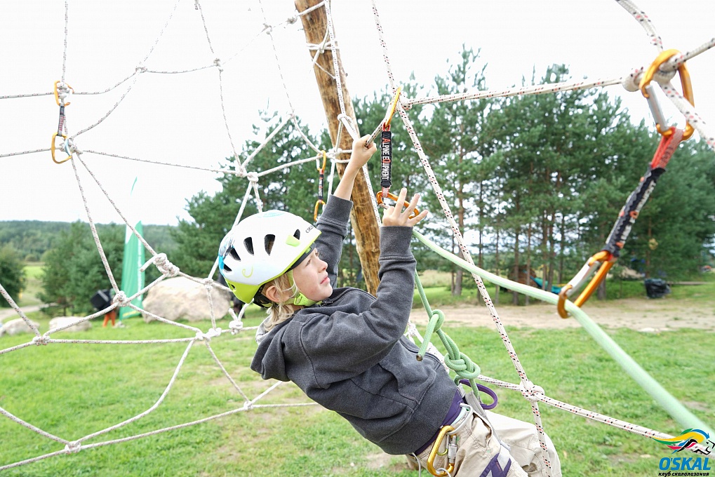 Каждое утро ребят начиналось с разминки и пробежки, а потом начинались тренировки на скалах. Дети излазили местные камни для боулдеринга, изучили основной скальный массив, учились работать с крэшпадами и гимнастической страховкой.Также дети лазили по возведенному командой O’Skal в предыдущем выезде небольшому панда-парку, с веревочными лестницами и сетками.